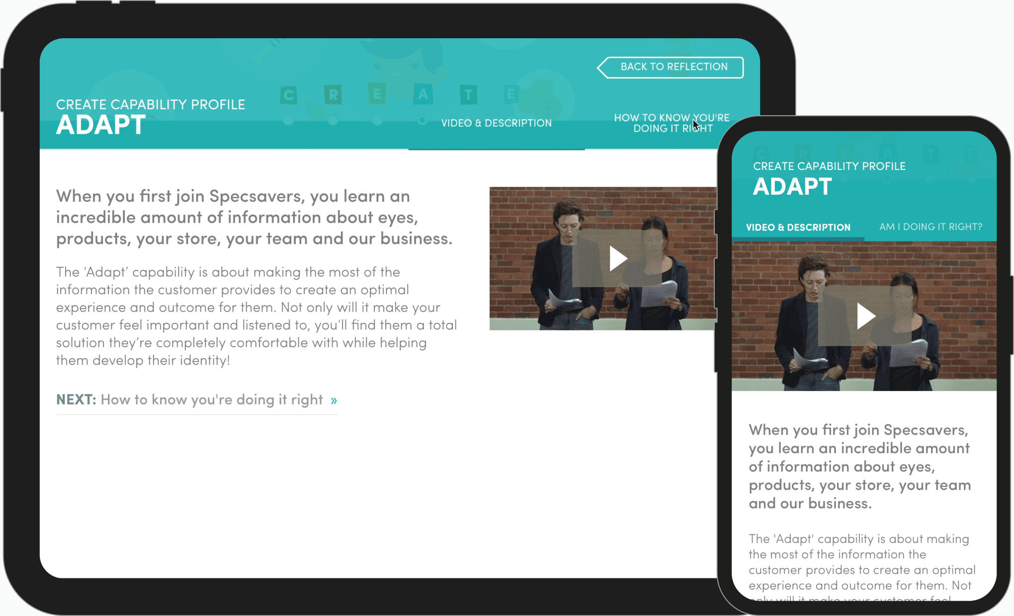 - App used as a core driver of the 'CREATE' customer service training received by all Specsavers store staff