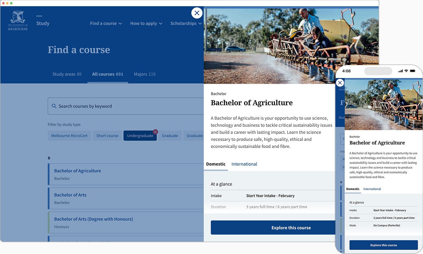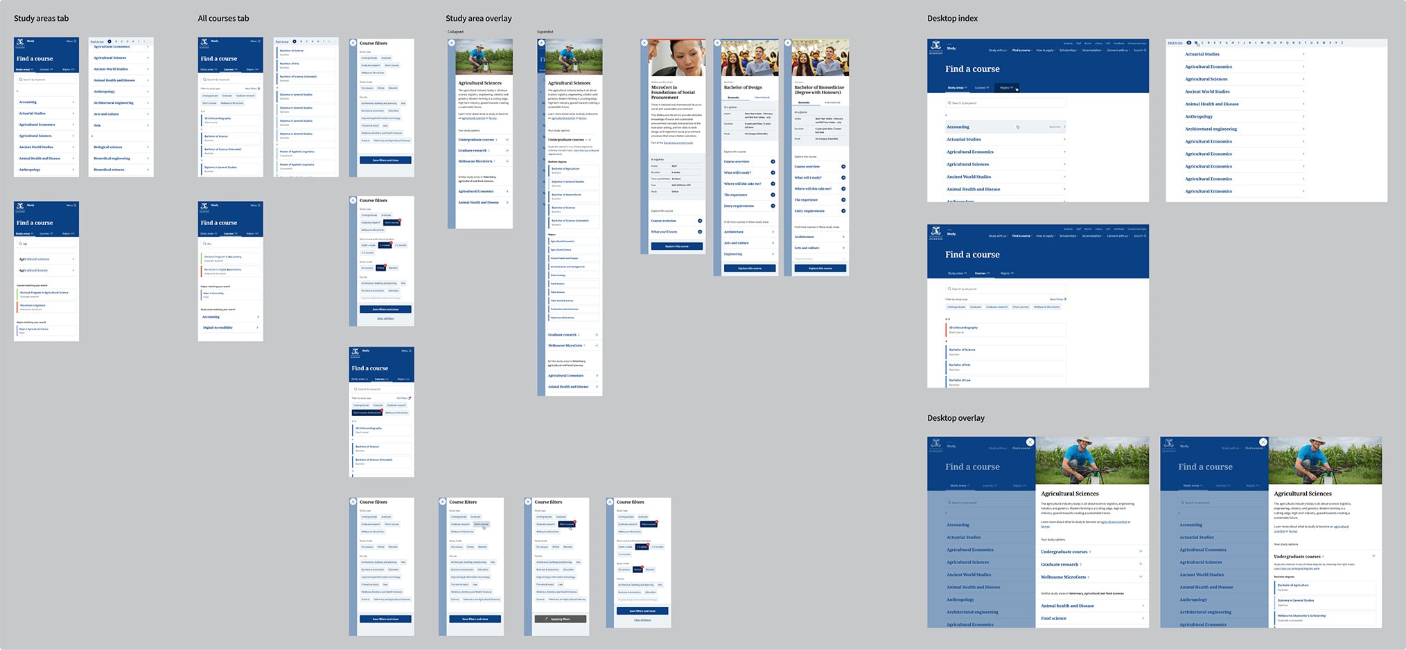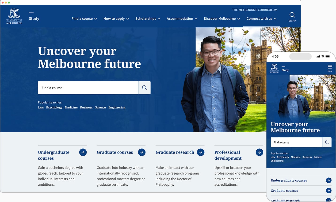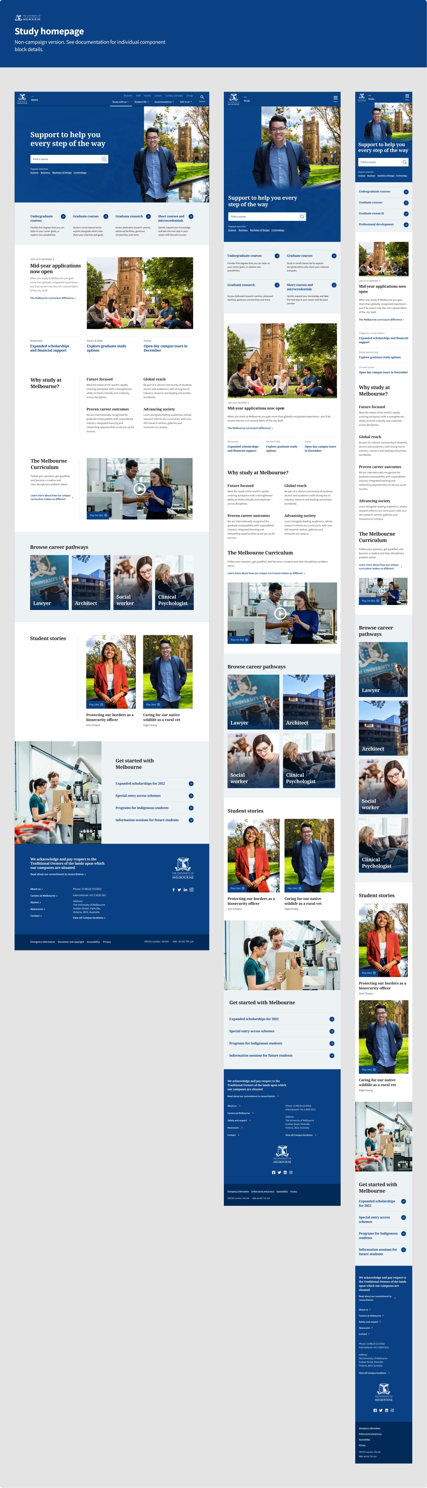 - Developing components, pages and page templates to cover ~466 courses and ~114 majors and specialisations across 3600+ pages